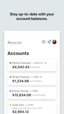Overall, Northern Skies eMobile offers a convenient and secure way for members of Northern Skies Federal Credit Union to manage their accounts and conduct banking transactions. With its user-friendly interface and various features, this app makes banking easier and more efficient for its users. So why wait? Download Northern Skies eMobile today and experience the convenience of mobile banking!
