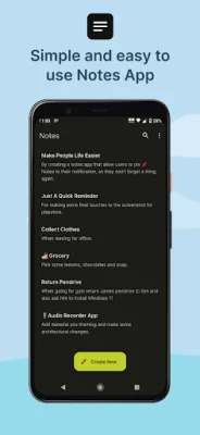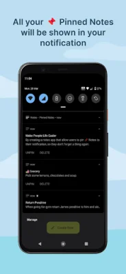 Notes is an application that helps you keep track of important tasks and information through the use of notifications. It allows you to create notes, save them locally on your phone, and even pin them to your notification bar for easy access. These notes will not be removed by the 'Clear all' button, ensuring that you are constantly reminded of them until you choose to unpin them. The app has a simple and user-friendly interface, with no unnecessary or complex features. It is designed to be a clean and efficient notes app, without any clutter or unnecessary elements. This makes it easy to use and navigate, without any distractions. One of the key features of Notes is its ability to save your notes locally on your phone. This means that you don't have to worry about using data or having an internet connection to access your notes. They will always be available to you, even when you are offline. In addition to creating and saving notes, you can also share them with others. This makes it a great tool for collaborating on tasks or sharing important information with friends and family. And with the option to pin notes to your notification bar, you can easily access them whenever you need to without having to search for them in the app. Another unique feature of Notes is that your notes will always come back, even after you power off or reboot your device. This ensures that your important reminders and information are always there for you, no matter what. And if for some reason they don't reappear, simply open the app once and they will be restored. If you have any questions or suggestions for the app, you can join the Telegram group or email the developer directly. They are open to feedback and strive to make the app as user-friendly and efficient as possible. So if you're looking for a simple and reliable notes app, give Notes a try today!