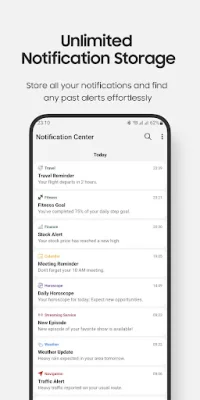 This application offers seamless integration with Samsung Edge Panels, allowing for quick access and control. It has several key features, including long-term notification storage, the ability to review and search through old notifications, and the option to copy and share specific notifications with others. Users can also filter notifications from selected apps and customize settings such as language and theme.