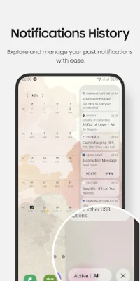 One of the exclusive features of this app is its integration with Samsung Edge Panels, which allows users to check their notifications without opening the app. They can also review notifications from their lock screen, with the option to disable this feature for added security. The app also offers one-handed access to active and past notifications, as well as comprehensive notification actions such as opening, deleting, and interacting with notifications.