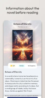 Not only does this app offer a dark mode for comfortable reading at night, but it also provides an epic and engaging reading experience. "Echoes of Eternity" is a world full of adventure, mystery, and excitement, waiting for you to discover. With this app, you can easily lose yourself in the story and escape from reality for a while.