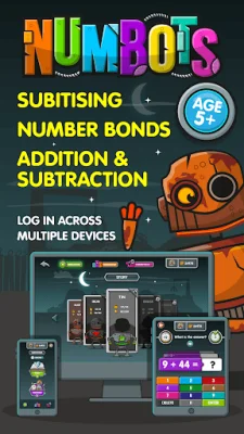 NumBots is an educational application designed to help children improve their mental math skills in addition and subtraction. The goal of the app is to help children achieve a "triple win" of understanding, recall, and fluency in these basic math operations. By mastering these skills, children will be able to move from counting to calculating, which is an important step in their mathematical development.