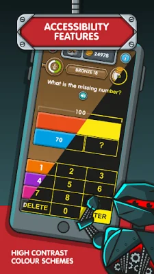 NumBots is suitable for children from Kindergarten (US) and up. Even younger players can benefit from the app, as it is designed to be accessible from a mathematical point of view. However, as the levels progress, the challenges become more difficult and require a higher level of fluency. This means that younger players may find it increasingly challenging to reach the level of fluency required to make progress.