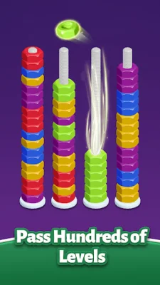 But don't be fooled by its soothing appearance, as the game also offers a challenging gameplay. As players progress through levels, more colors are introduced and screws become scarce, making it harder to guide the nuts to their designated homes. Hidden color blocks and obstacles add an extra layer of difficulty, requiring players to use their brains and strategic thinking to overcome them.