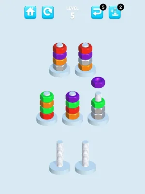 In summary, Nuts and Bolts Sort is a free and user-friendly puzzle game that challenges players to strategically move nuts and bolts to their correct locations. With its simple controls, no penalties or time constraints, and accessibility for all, it's a great choice for anyone looking for a fun and addictive puzzle game. So why not give it a try and see if you have what it takes to master the nuts and bolts?
