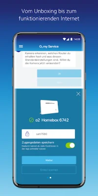 Der Einrichtungsassistent erinnert an das Aktivierungsdatum und unterstützt bei der Einrichtung des Internetanschlusses. Mit einem Kamerascan erkennt die App den Router und ermöglicht eine schnelle Verbindung. Auch die Zugangsdaten können gescannt und automatisch freigeschaltet werden. Die WLAN-Daten werden ebenfalls erkannt und die Verbindung automatisch eingerichtet.