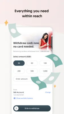 One unique feature of the OCBC app is the ability to withdraw cash from any OCBC ATM in Singapore without an ATM card. Users can simply scan a QR code using the app and withdraw cash hassle-free. This feature eliminates the need to carry an ATM card and makes it more convenient for users to access their funds.