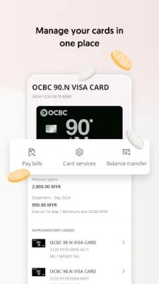 With the Manage Your Money feature, you can easily place fixed deposits and let your money work harder for you. The Card Services feature allows you to activate your credit card instantly through the app and create or change your debit and credit card PIN for added security.