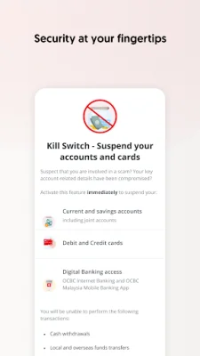 The OCBC 360 Account also prioritizes security with features such as OneToken, which generates a one-time password securely within the app while you are on the go, and Kill Switch, which allows you to suspend your accounts, cards, and digital banking access immediately in case of any security concerns.