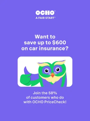 So why should you choose OCHO? For starters, some customers may qualify for no-deposit coverage, while others can enjoy a significantly lower down payment. Additionally, OCHO offers a flexible payment plan that allows you to pay over time. Need extra days to make a payment? No problem. OCHO also provides instant proof of insurance, so you can get covered the same day. And with their unique PriceCheck tool, you can ensure you're getting the best and most affordable quote. In fact, 58% of OCHO customers save $600!