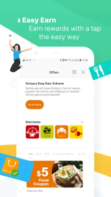 By joining the Easy Earn Scheme, you can earn eStamps and eCoupons with a single tap when paying with Octopus at over 2,000 outlets. This allows you to unlock more offers and rewards while using the app.