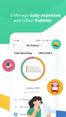 Not only can you use the app to manage your consumption voucher, but you can also top up your Octopus card and your family's using the Faster Payment System (FPS). This eliminates the need for cash and allows you to easily keep track of your card's remaining value and spending records. Additionally, you can collect Public Transport Fare Subsidies through the app.