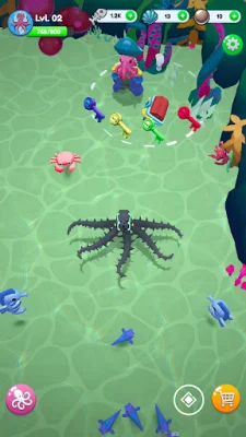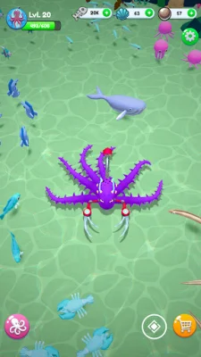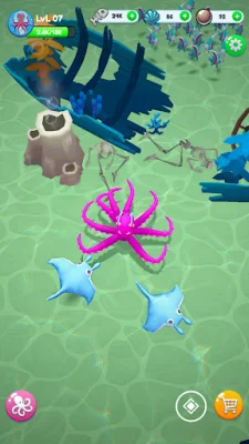 As you progress, you can evolve your octopus's tentacles from 1 to 8 with unique abilities. Upgrade their speed, strength, and special attacks to become an apex predator. You can also customize your octopus's evolution path, choosing to be fast or ferocious.