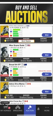 For those looking to add new horses to their stable, the game also features a horse auction where players can bid on potential champions or take a chance on a wild card. Players can even put a claim on a race horse in claiming races.
