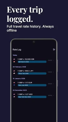 The app supports multiple currencies, including GBP, EUR, USD, JPY, AUD, CAD, CHF, and CNY, among others. It also has a travel date logging feature, allowing you to keep track of exchange rates for different dates. This is useful for expense reporting or remembering the rates you used for specific trips. The reverse conversion feature allows you to quickly understand both directions of any currency pair without manual recalculation.