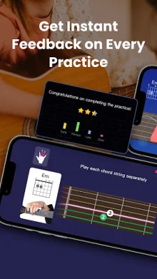 Using AI and music recognition technology, OKMusician provides instant feedback on your accuracy and timing while practicing. You don't need any additional equipment, whether you're playing guitar or ukulele.
