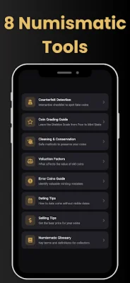 In addition to these features, the app offers eight expert numismatic tools, including a coin scanner, value estimator, counterfeit detection guide, grading guide, and more. These tools make it a valuable resource for coin collectors, antique dealers, metal detectorists, and anyone interested in old coins.