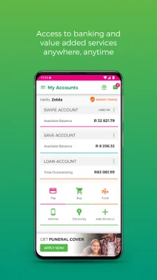 The app also offers a variety of features, including the ability to deposit cash at select stores, purchase airtime, data, and electricity, manage beneficiaries, and make free payments to other Money Account holders using their mobile number. Users can also easily transfer money between their SWIPE and SAVE accounts, view balances and transaction history, and even switch their card on or off for added security.