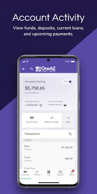 OneAZ is a mobile banking application that offers a variety of features to help you manage your finances on the go. With this app, you can deposit checks without having to visit an ATM, making it convenient and time-saving. It also provides financial wellness tracking, allowing you to set savings goals, monitor your cash flow, and analyze your spending habits. The account dashboard feature makes it easy to view and manage all your OneAZ accounts in one place. You can also use the card controls feature to manage lost debit cards or set travel alerts, giving you peace of mind and control over your finances. Additionally, you can transfer funds between accounts and make payments on your OneAZ loans with just a few taps. OneAZ also offers bill payment services, allowing you to schedule one-time or recurring payments and manage all your bills in one place. The app also has a convenient locator to help you find a branch or ATM near you. And if you need any assistance, you can get real-time support through live chat or secure emails. One of the best things about this app is its high level of security. All your transactions are protected by 128-bit SSL, ensuring that your personal and financial information is safe from unauthorized access. And even if you're not a member of OneAZ, you can easily open an account by visiting their website or calling their customer service number. In conclusion, OneAZ is a comprehensive and user-friendly mobile banking app that offers a range of features to help you manage your finances efficiently. With its convenient services and top-notch security, it's a great tool for anyone looking to stay on top of their finances. So why wait? Download OneAZ now and take control of your finances today!