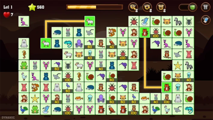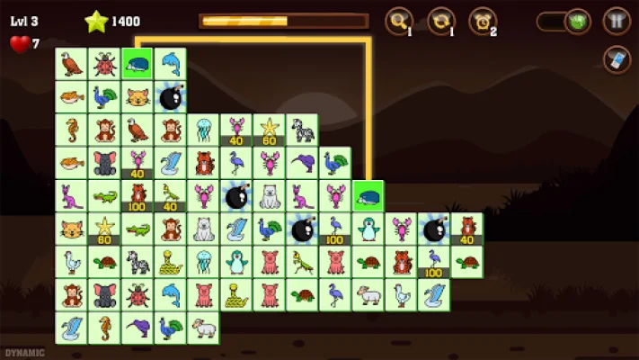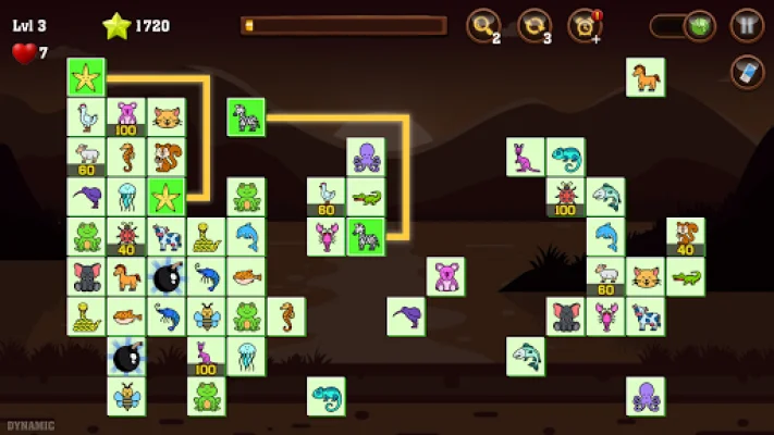 In Onet Ani – Animal Connect, players must use their skills and strategy to connect two matching tiles with no more than 3 lines in order to eliminate them from the board. This game also offers the unique feature of connecting two mines, which will automatically remove two additional tiles. By connecting two high-scoring tiles, players can earn extra points and by connecting two animal mines, they can eliminate all instances of two types of animals on the board. The game ends when the time runs out or when players run out of reshuffle attempts (hearts). However, there are three aids available to help players achieve high scores: adding 20 seconds, reshuffling the board, and showing hints.