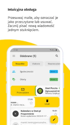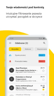 Onet Poczta also offers a fast search function, making it easy for users to find specific emails or contacts. The application also provides easy access to all contacts from both the mailbox and the user's phone, making it convenient to send emails to saved contacts. Users can also mark important emails with an asterisk, making it easier to prioritize and organize their inbox.