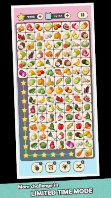 The game also offers three different themes to choose from: Animal, Cake & Candy, and Fruit & Vegetable. And the best part? Onet Star is completely free to play and can be enjoyed offline without the need for internet or wifi. It's easy for both kids and adults to play, with fantastic graphics and the ability to compare scores with friends.