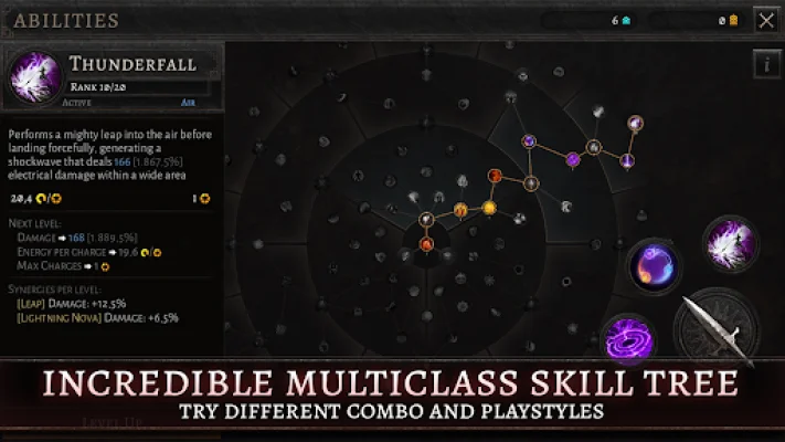 The game also features a multiclass system, allowing players to shape their hero through a vast, interconnected skill tree. With up to 21 unique classes to unlock, players can mix and match abilities to create truly unique builds. Every branch of the skill tree leads to new combos, synergies, and powerful effects, giving players the freedom to forge their own playstyle.