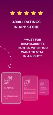 But be warned, our game includes very personal and provocative questions. The app developers are not responsible for any exposed secrets, injuries, or damaged friendships that may occur during the game. However, we promise that the game will be incredibly interesting and entertaining. Our app is the perfect alternative to "For The Girls" and is suitable for a variety of situations such as girls' night, birthday parties, bachelorette parties, corporate events, sleepovers, and more. So, download the app and get ready for a night of fun and laughter with your friends!