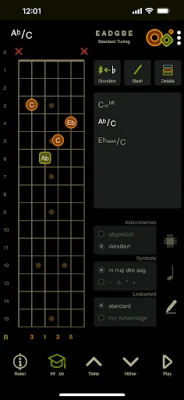 In addition to these modules, Oolimo also offers general features such as an interactive fretboard and chord diagrams, playback of chords and single notes, and the ability to switch between detailed or compact chord names. The app also has a day/night mode and a left-handed mode, making it accessible to all users. And with language options in German, English, and Spanish, Oolimo strives to be original and SEO-oriented to reach a wider audience.