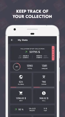 The application also offers complete statistics to track the evolution of your collection. This includes features such as finding duplicate cards and graded cards, making it easier to manage and update your collection.