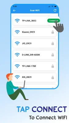 The app has a "Find & Connect" feature that scans the surroundings and provides a detailed list of available WiFi hotspots. This makes it easy for users to find and connect to free WiFi networks at cafes, airports, libraries, and other public places. This eliminates the worry of running out of mobile data and allows users to stay connected wherever they go.