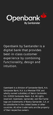 Openbank is a division of Santander Bank, N.A. and is a member of the FDIC. All rights reserved. So why wait? Download the app and start managing your finances on-the-go with Openbank's mobile banking app today!