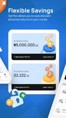 Optimus 2.0 introduces several new features, including Optilock Top-Up, which allows users to top up their locked savings without affecting their lock period. This makes it easier to build savings effortlessly. Additionally, the app now offers OptiTarget Savings Plans, which allow users to save towards personal goals or collaborate with friends and family through Personal, Public Group, and Private Group savings options. Users can set goals, automate contributions, and track their progress.