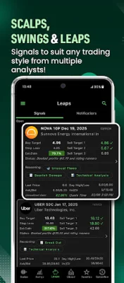 The app also offers technical analysis tools, including stock analyst ratings, price targets, support and resistance levels, and a target price and stop-loss calculator. This information is provided with every alert, giving traders guidance on when to enter and exit a trade. Interactive charts are also available, with line and candlestick charts and technical indicators like RSI, SMA, EMA, and VWAP to help traders identify patterns and make informed decisions.