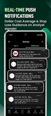 The daily trade alerts feature provides real-time buy/sell signals with targets and stop-losses. These alerts are tailored for day traders, swing traders, and long-term investors and are based on technical analysis, chart patterns, volume surges, market action, economic indicators, and stock news. The app covers a wide range of signals, including Swing Signals, Lotto, Meme stocks, hedging, and more. These alerts can be used with any trading app, such as Robinhood, TD Ameritrade, Thinkorswim, Webull, E*TRADE, or a stock market simulator.