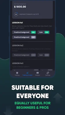 Some of the main features of our app include a training course divided into three parts based on the trader's level, real-time market simulator with virtual funds, and professional analytical tools and interactive charts for making informed decisions. Users can also trade a variety of assets, including stocks, bonds, currencies, futures, and cryptocurrencies, all on one platform.