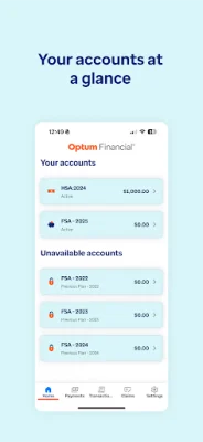 The Optum Financial mobile app provides convenient access to all of your Optum Financial benefit accounts. With this app, you can easily view and manage your account balances and transaction history, pay providers or reimburse yourself for qualified out-of-pocket expenses, and view and manage your claims. The app also offers smart in-app alerts for any claims that require your attention, making it easier for you to stay on top of your benefits.