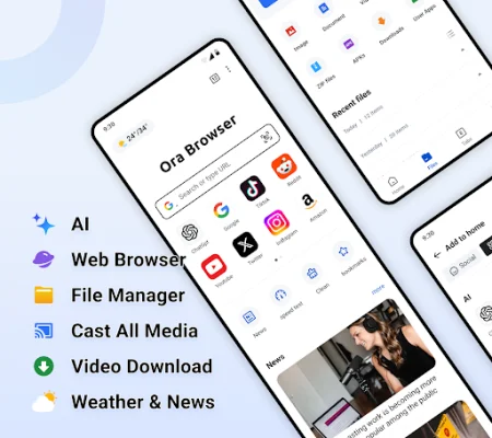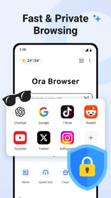 Ora Browser is a comprehensive application that offers a seamless and effortless online browsing experience. With its quick internet surfing feature, users can easily access any website and switch between their favorite sites with multi-window management. The app also includes a file manager, allowing users to organize and browse various files on their phone, freeing up space and improving performance with just one click. One of the standout features of Ora Browser is its AI navigation, providing users with comprehensive site navigation, the latest AI-related news, and cutting-edge information. The app also offers accurate weather predictions in real-time, keeping users informed about current conditions and providing detailed meteorological data. For those who want to stay updated on the latest news, Ora Browser offers live news updates on a variety of topics, including major events, scientific and technological innovations, and entertainment news. The app also includes a QR code scanner, making browsing more efficient by seamlessly connecting the physical and digital worlds. Privacy is a top priority for Ora Browser, which offers an incognito mode to protect users' personal data and browsing history. The app also features an easy downloader, supporting high-speed downloads of various file formats, and an easy casting feature that allows users to connect to TV devices and cast local and online videos, audio, and images. With Ora Browser, users can enjoy worry-free internet browsing with strong data privacy safeguards. The app's multi-functional integration reduces the need for multiple apps, making it a convenient all-in-one assistant. It also helps users manage their phone's storage and clean up junk files, freeing up space with just one easy step. Experience a new digital lifestyle by downloading Ora Browser now. With its user-friendly interface and a wide range of features, it's the perfect choice for those looking for a secure, efficient, and all-in-one browsing experience.