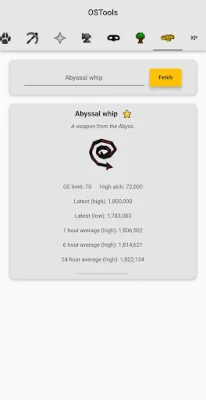 And finally, the app offers a grand Exchange lookup feature. This allows you to search for any item available in the GE and provides information such as whether it is a members-only item, its examine text, buy limit, high alch price, current price (both high and low values), and price changes in the last 1 hour, 6 hours, and 24 hours. This feature is not only useful for gameplay purposes, but it also adds a unique and SEO-oriented aspect to the app.
