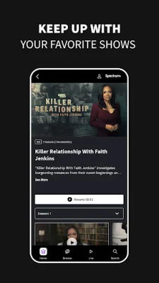 In addition to Oxygen content, the app also provides access to on-demand content from other networks within the Versant family, including USA, SYFY, E!, MSNOW, CNBC, and Golf Channel. You can live stream these networks within the app and browse a dedicated page for each network, showcasing their hottest series. The app also offers a catalog of recent and throwback favorites, which can be filtered by network and genre for easy browsing.