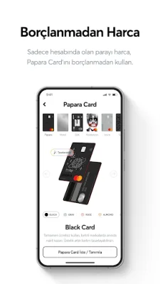 Papara Card'ını seçerek ön ödemeli kartlardan sana en uygun olanını seçebilirsin. Papara Card ile 5 farklı renk seçeneği sunuluyor ve dilersen kendi tasarımını yapabilirsin. Ayrıca DC evreninden ilham alan Koleksiyon Kartlar, takımına destek vermek isteyenler için Taraftar Kartlar, ismine özel üretilen Metal Card ve görme engelliler için dünyanın ilk sesli kartı olan Voice Card gibi farklı seçenekler de mevcut. Ayrıca online alışverişlerinde güvenliği en üst seviyeye taşımak istersen Sanal Kart ve tek kullanımlık Hayalet Sanal Kart gibi seçenekler de mevcut. Papara aynı zamanda yüzlerce markadan birini seçerek sevdiklerine ücretsiz Hediye Kartı gönderebilirsin. Edu Card ile de harçlığını dijital olarak yönetebilir ve öğrencinin harcamalarını anlık olarak takip edebilirsin.