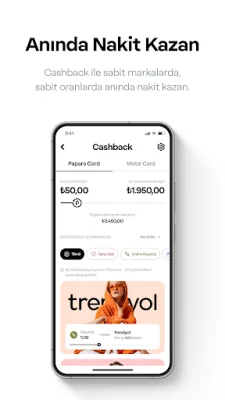 Cashback özelliği ile de popüler markalarda yaz sezonu boyunca her ay ₺1.950 nakit kazanabilirsin. Trendyol, Eczane, Ulaşım Kartları, Netflix, Spotify, Youtube, Gain, Şok, Watsons, Madame Coco, App Store, Play Store, Flo, DeFacto, DeFactoFIT, D&R, Burger King, Hop, S Sport Plus, Steam, Uber ve PlayStation gibi markalardan Cashback kazanabilirsin.
