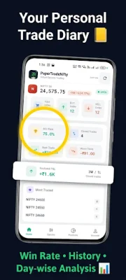 The app also offers a positions and P&L tracking feature, where users can see live updates on all open positions and a total P&L summary with margin utilization. They can also exit trades with just one tap, allowing them to practice fast decision-making like real traders. Additionally, Paper Trade Nifty has a trade journal and diary feature, where users can track their order history with timestamps and analyze their trades day-wise with win/loss statistics. This can help users improve their options trading strategy with data.
