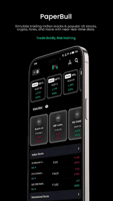 PaperBull offers a variety of markets and assets for users to trade, including Indian and US stocks, popular forex pairs, futures, indices, crypto, and funds. It also provides advanced tools such as interactive charts, technical indicators, trendlines, and watchlist and portfolio management.