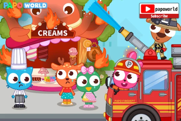 When the fire alarm goes off, it's important to be prepared for the accident right away. This app allows you to experience the daily life of a firefighter by completing 10 different tasks and earning medals of honor for your bravery. You can also learn important fire control knowledge and visit different departments to try on protective gear and use equipment. The Papo Town Fire Department has various simulated scenes, including a mission control center, training ground, fire truck and helicopter, equipment room, and fire scenes. To become a qualified firefighter, you must train hard. The app offers daily exercise tasks in the training fields and also allows you to maintain the fire truck and helicopter so they are ready for emergencies. You can also play with your childhood pal Purple Pink while exploring seven different scenarios and using over 100 interactive props. The app supports multiplayer mode, so you can play with friends and there are no rules or limits to the exploration. This version of Papo Town Fire Department is free to download, but you can unlock more rooms through in-app purchases. Once you make a purchase, it will be permanently unlocked and linked to your account. If you have any questions during the purchase or while playing, you can contact the developers via email. Papo World aims to create a fun and relaxed environment for children to learn and play. Their preschool digital educational products are designed to stimulate curiosity and interest in learning through games and animated episodes. By playing this app, children can develop healthy habits and enhance their creativity and imagination. The developers are dedicated to discovering and inspiring the talents of every child. If you want to contact the developers, you can reach them through email, their website, or their Facebook page. This app does not require Wi-Fi, so it can be played anywhere. With beautiful pictures and vivid animations, this app is a great way for children to learn about the important role of firefighters in our communities.