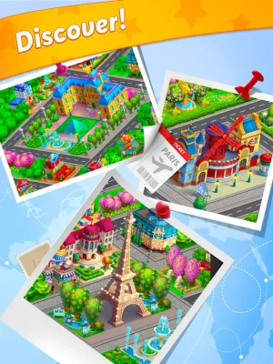 Settle down in the city of dreams and love, where you can experience the best of French culture with croissants and coffee for breakfast, high fashion, and stunning architecture. This is all possible in our game, where you can build your dream city and restore beautiful old buildings, as well as create incredible new ones. You can also decorate your city with parks, alleys, and fountains to make it even more beautiful. Come play and explore all the new features we have to offer!