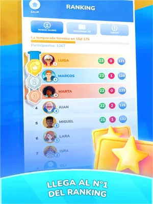 As you play, you can earn points, level up, and unlock achievements and avatars. There are also different game modes, including "Juegos," "Programa de TV," "Duelo," and "Rosco diario." Each mode offers different rewards and challenges. If you enjoy word games and puzzles, this app is perfect for you. Don't wait any longer, download it now and improve your vocabulary while having fun!