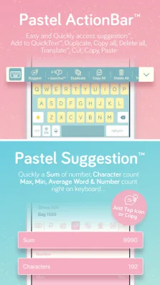 Pastel Keyboard™ is an application that offers a wide variety of cute and colorful keyboard themes for Android devices. With over 15,000 themes to choose from, users can easily customize their keyboard to match their personal style. The app also includes special features such as QuickText, a calculator, and cute fonts to make typing more convenient and fun.