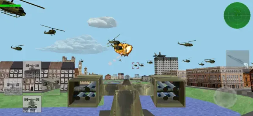 The game features various missions where the player must continuously defend against enemy attacks. This includes not only missiles, but also bombers and helicopters. The player has access to multiple anti-aircraft missile batteries located throughout the city. They can switch between these batteries at any time to choose the best position from which to launch the missile. This adds a dynamic element to the game as the player must constantly assess the situation and adapt their strategy accordingly.