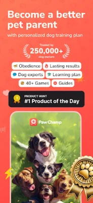 With PawChamp, users can access a personalized training plan, ask for help from professional dog trainers 24/7 for free, and follow video lessons led by real experts. The app also provides a daily step-by-step plan tailored to fit the specific needs of each dog. Users can practice commands and games for both focus and fun, and receive expert tips to address common issues such as barking, biting, leash pulling, and dog anxiety. The app also offers the ability to track progress with daily streaks, test skills with quick training quizzes, and download ebooks and planners to stay organized.